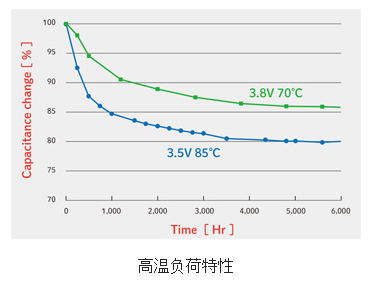 ●與雙電層電容器比較,高溫負(fù)荷特性優(yōu)異。可參考如下的特性圖: